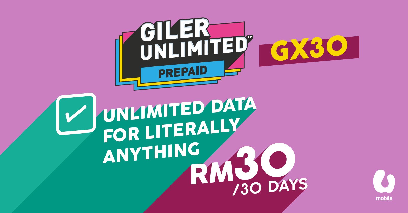 Starting from 12 june onwards, the speed cap for the gx30 plan will be increased from 3mbps to 6mbps which matched the speed cap on gx38. Pelan gt30 ini berharga rm30 sebulan. We believe giler unlimited sets a whole new benchmark for the industry as one can enjoy unlimited data for all apps on your smartphone, any time, any day from as low as rm30. U mobile has upgraded its giler unlimited prepaid plans, enhancing the value of its gx30 and gx38 packages with increased speed, additional hotspot quota, and unlimited calls. It's the most giler and amazing reward in town for only rm1!