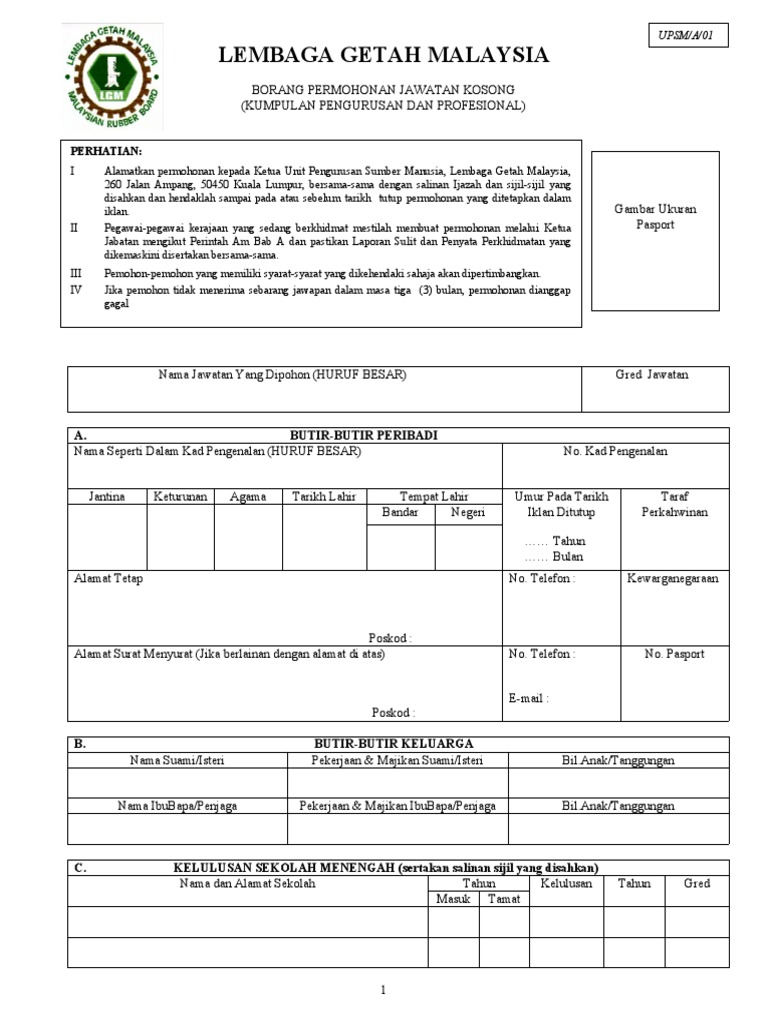 Borang permohonan jawatan kosong (kumpulan pelaksana) nama jawatan yang dipohon (huruf besar) gred jawatan a. The malaysian rubber board (mrb) or lembaga getah malaysia is the custodian of the rubber industry in malaysia. Jawatan kosong terkini jawatan kosong terkini pilihan kerajaan. Lembaga lebuhraya malaysia tidak bertanggungjawab ke atas permohonan yang tidak diterima atau tidak lengkap. 2) sila scan/ imbas kod atau tekan link yang telah diberi bagi setiap jawatan yang anda inginkan untuk isi borang permohonan.